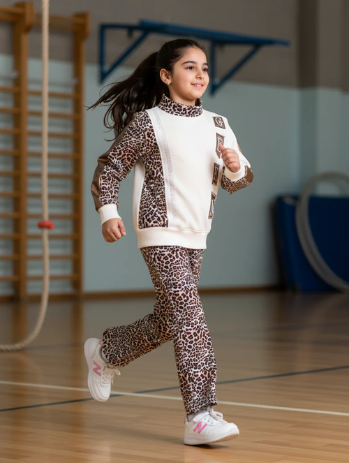 Girls’ Peach & Blue Patchwork Hoodie Tracksuit